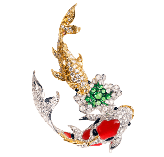 象徵著吉祥富貴的錦鯉,對 JHENG Jewellery 而言,更象徵著相守與陪伴 - 與重要人士的羈絆。同時,錦鯉系列作品也是獻給品牌第3代傳人 Jeff Cheng 結婚三十週年的紀念,將兩隻絢爛斑斕的錦鯉譬喻為彼此,在一起有歡笑、有甜蜜的『相生相守』。