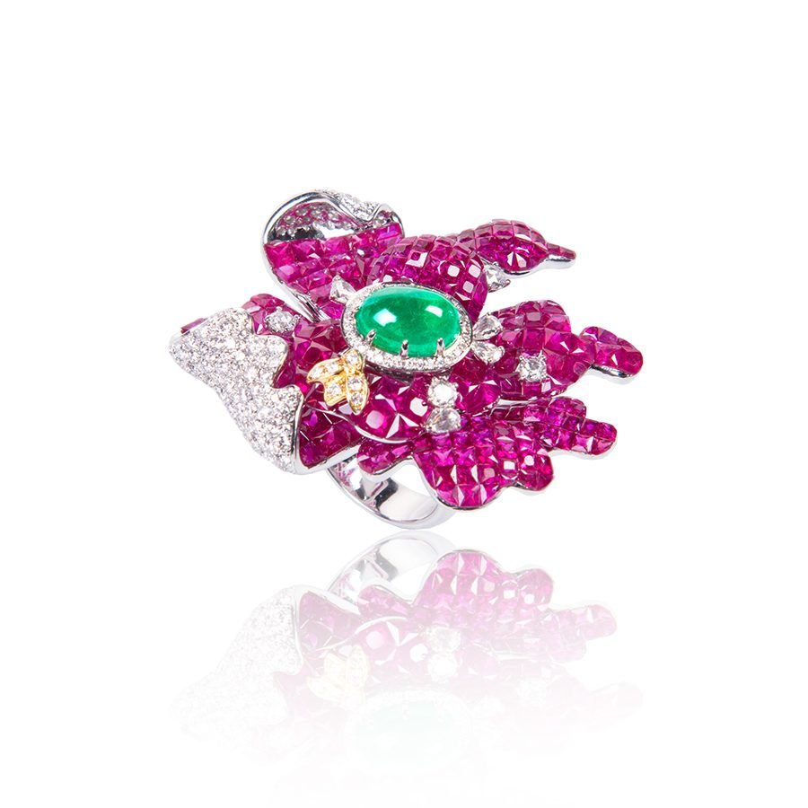 JHENG瑰麗大師大師珠寶系列,以超凡全寶石面設計,締造無比奢華的感官體驗,頂級紅寶與絕美蛋面祖母綠共譜極致璀璨詩篇。