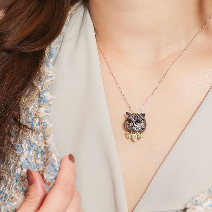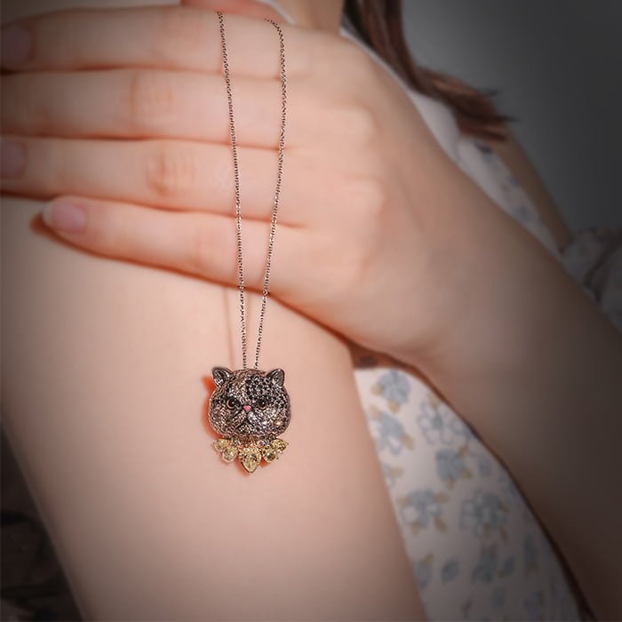 天然彩鑽鑽石墜 18K黑金與18K白金材質, 黃鑽石, 彩色鑽石, 黑鑽石, 茶晶, 琺瑯與白鑽石。 ・附贈一次免費刻字服務