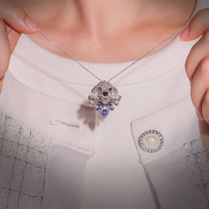 天然藍寶鑽石墜 18K白金材質, 藍寶石, 黑瑪瑙與白鑽石。 ・附贈一次免費刻字服務