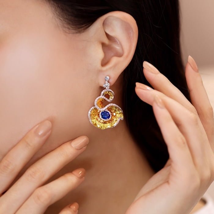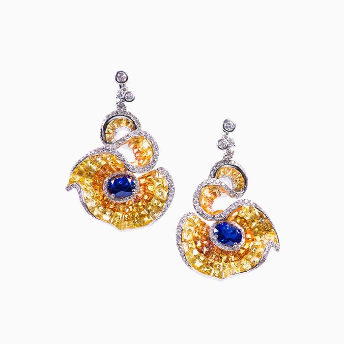 18K白金材質, 藍寶石, 黃寶石與白鑽石。