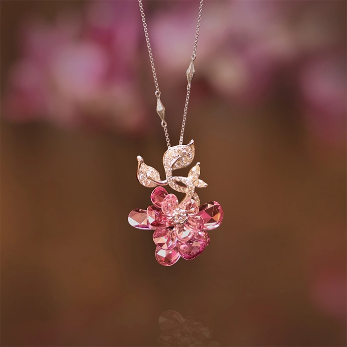18K白金材質, 彩色剛玉,馬眼鑽石,H&A圓鑽與白鑽石。