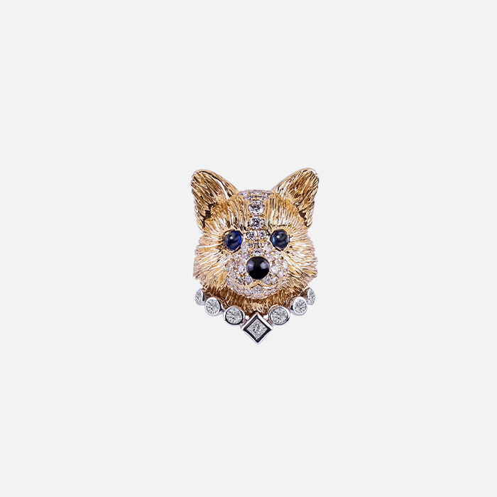 18K黃金與18K白金材質, 藍寶石, 黑瑪瑙與白鑽石。