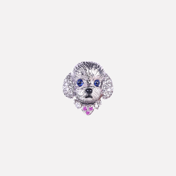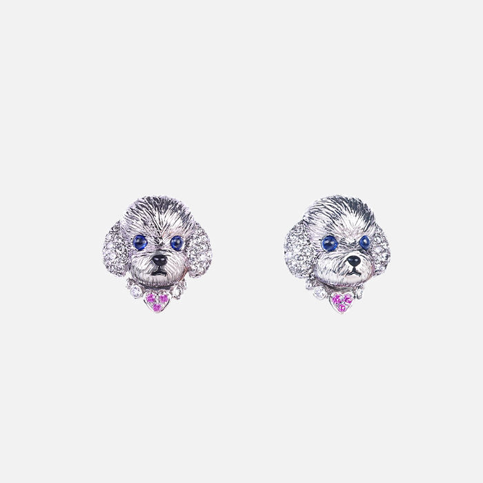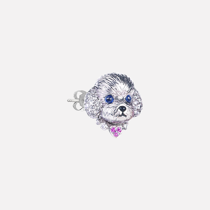 天然藍寶鑽石單邊耳環 18K白金材質, 藍寶石, 粉剛, 黑瑪瑙與白鑽石。