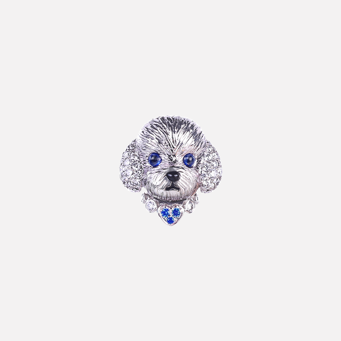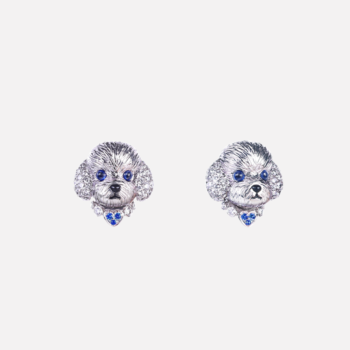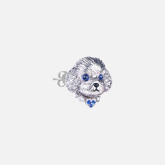 天然藍寶鑽石單邊耳環 18K白金材質, 藍寶石, 黑瑪瑙與白鑽石。