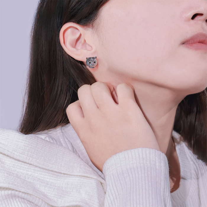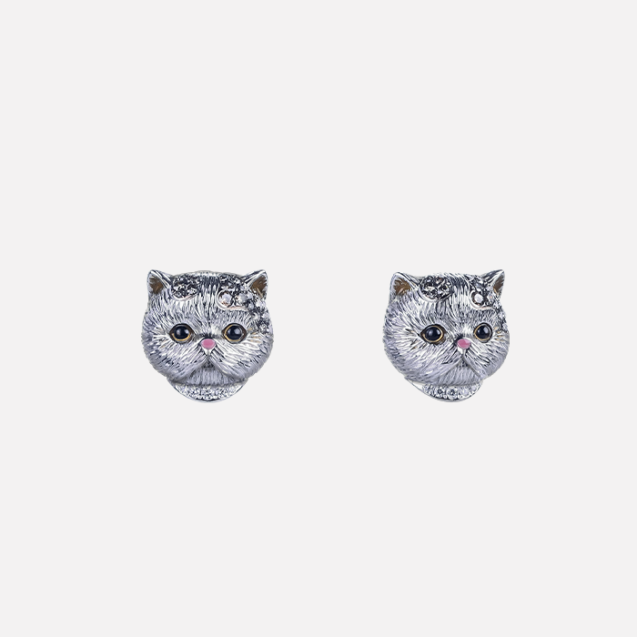 天然彩鑽鑽石單邊耳環 18K白金材質, 彩鑽, 茶晶, 琺瑯, 黑瑪瑙與白鑽石。