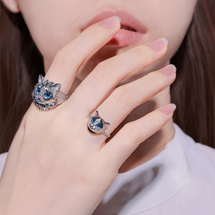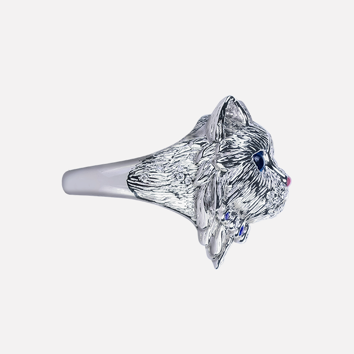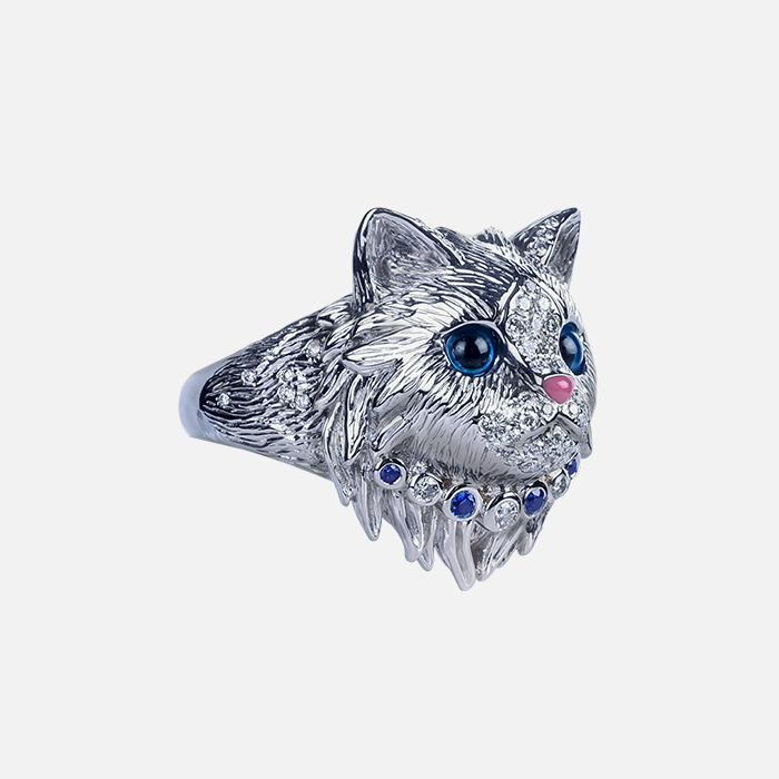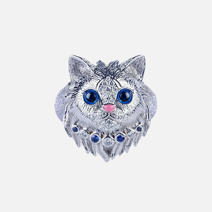 18K白金材質, 藍寶石, 白水晶, 琺瑯, 黑瑪瑙與白鑽石。