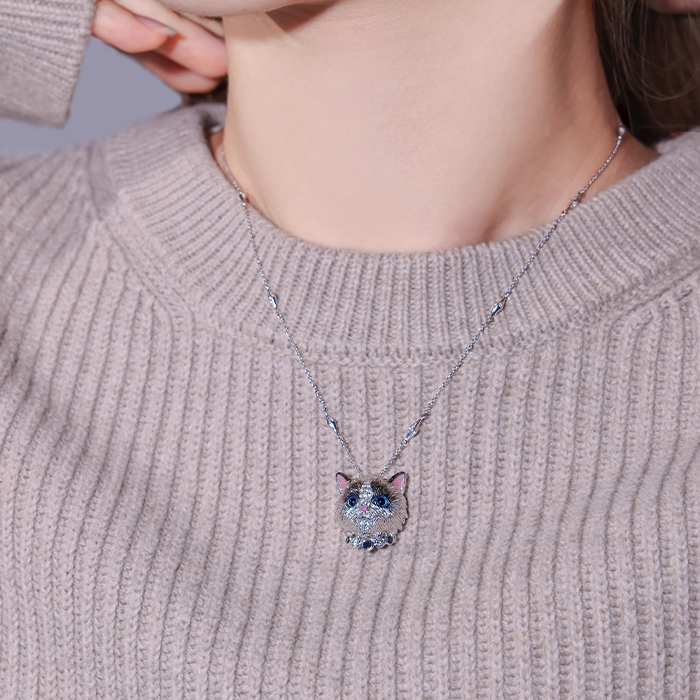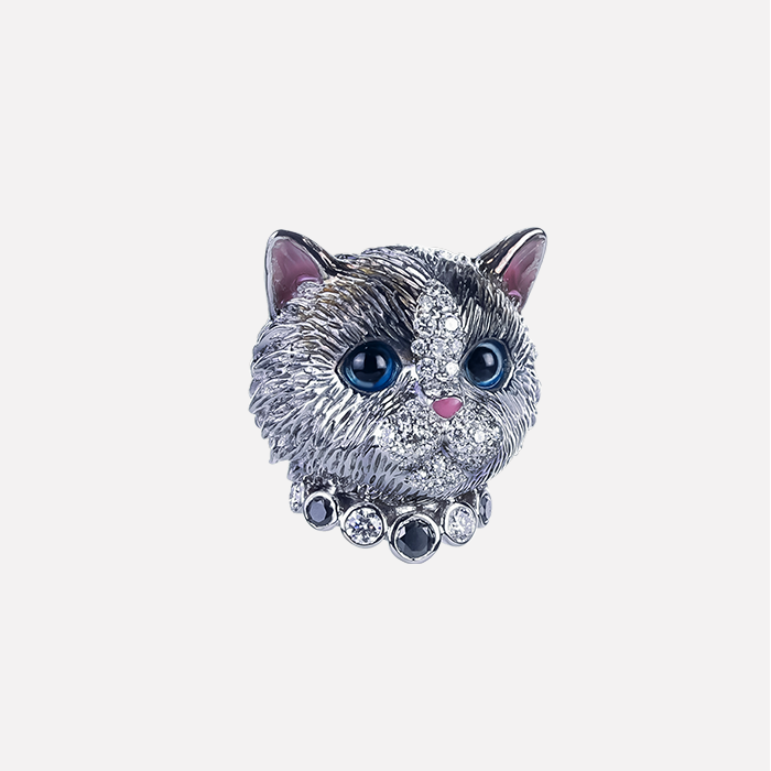 天然彩鑽鑽石墜 18K白金材質, 黑鑽石, 白水晶, 琺瑯, 黑瑪瑙與白鑽石。
