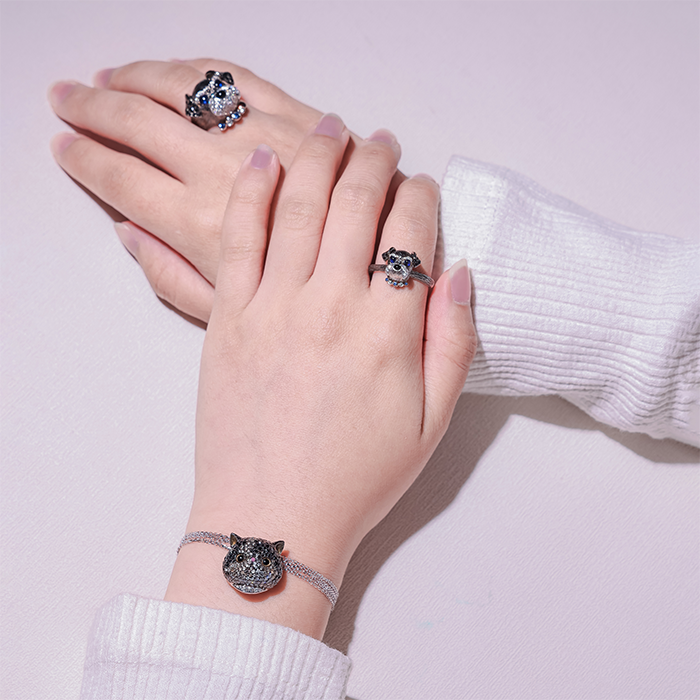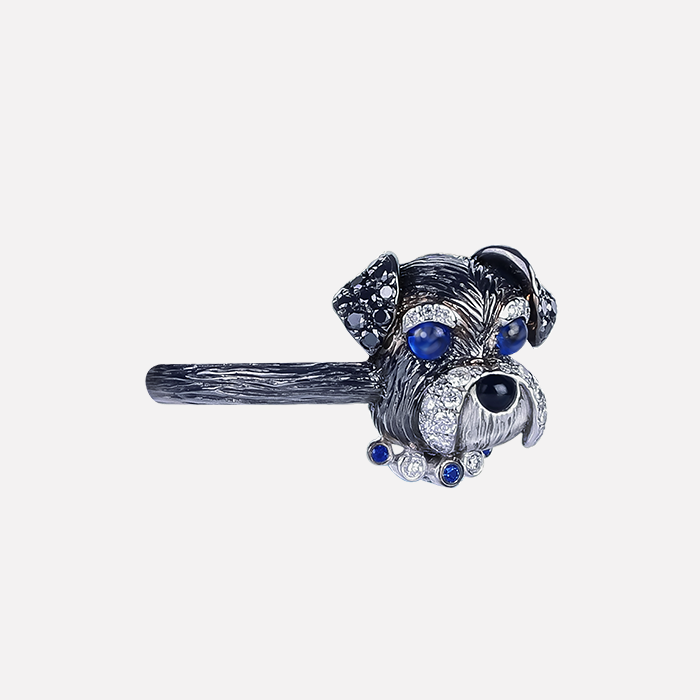 迷你雪納瑞造型藍寶戒指