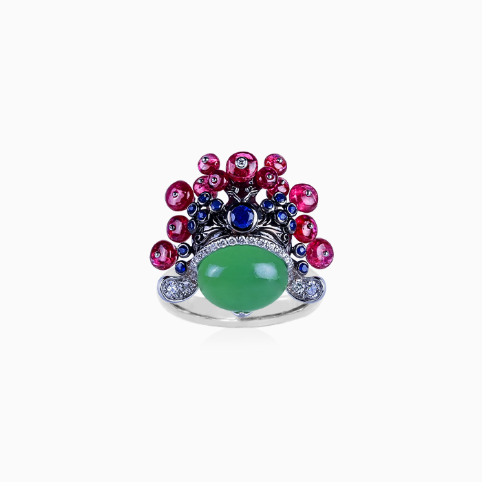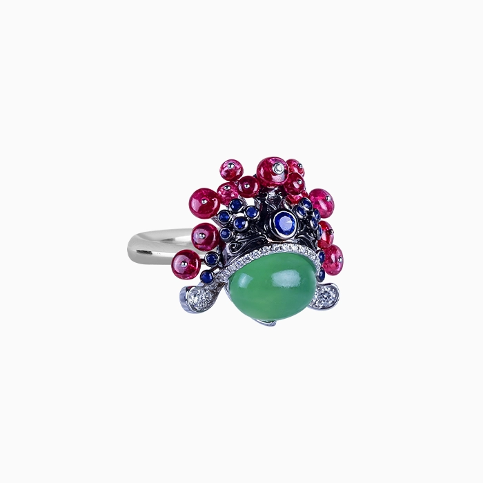 18K白金材質, 藍寶石, 紅寶石, 緬甸產玻璃種翡翠與白鑽石。 ・迷你臉譜系列 № 91 作品