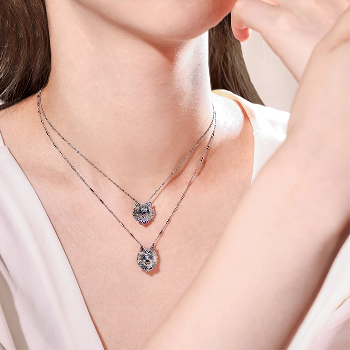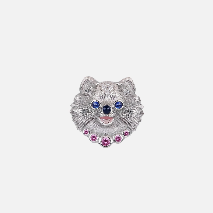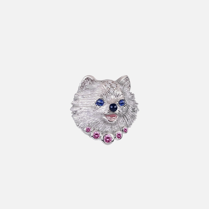 天然粉剛鑽石墜 18K白金材質, 粉色剛玉, 藍寶石與白鑽石。