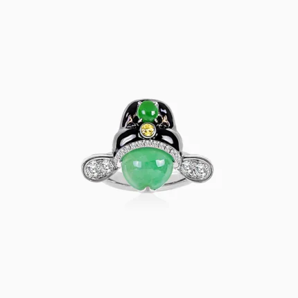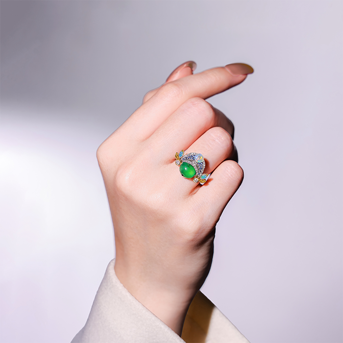 18K黃金材質與18K白金材質, 緬甸產玻璃種翡翠, 藍寶石, 蛋白石與白鑽石。 ・迷你臉譜系列 № 139 作品