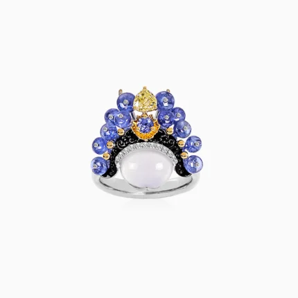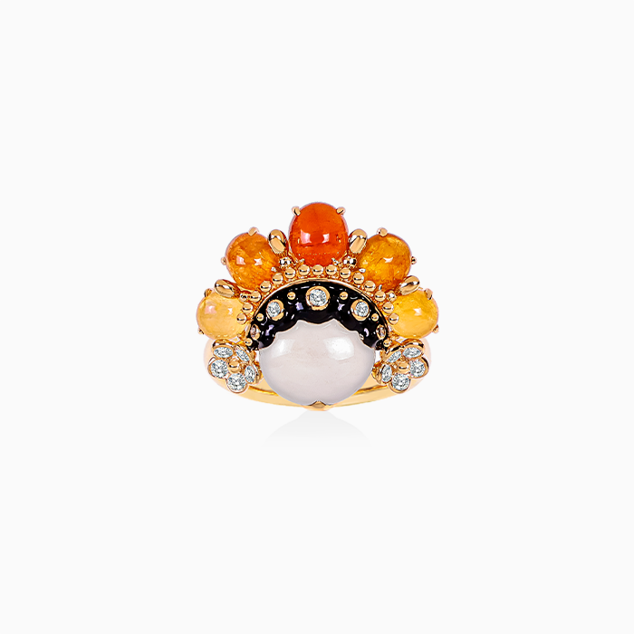 18K黃金材質, ,緬甸冰翡, 緬甸黃翡, 琺瑯與白鑽石。