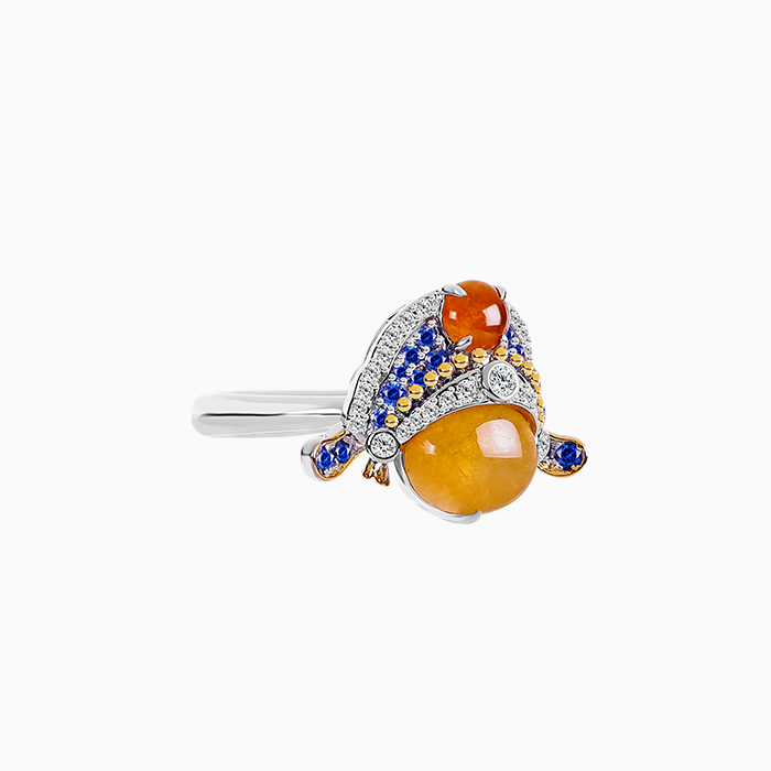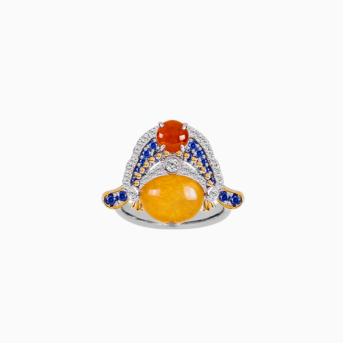 18K黃金材質與18K白金材質, 緬甸黃翡, 藍寶石與白鑽石。 ・迷你臉譜系列 № 126作品